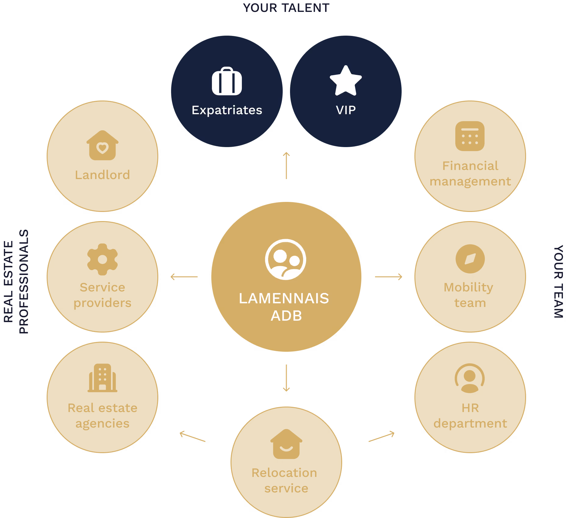 Depuis de nombreuses années, Lamennais ADB accompagne les entreprises françaises et internationales dans l’installation de leurs collaborateurs en Île-de-France. Grâce à notre expertise immobilière, nous simplifions chaque étape du processus : recherche du logement, vérification du bail, signature et état des lieux. Un interlocuteur unique dédié assure un suivi personnalisé et une gestion fluide du dossier. Nous assistons vos collaborateurs pour la souscription des assurances, le paiement des loyers et la résolution des incidents. À la fin du bail, nous veillons à la récupération du dépôt de garantie et à la défense des intérêts du locataire. Avec Lamennais ADB, vous offrez à vos équipes un accompagnement sur mesure, sûr et conforme à la réglementation.